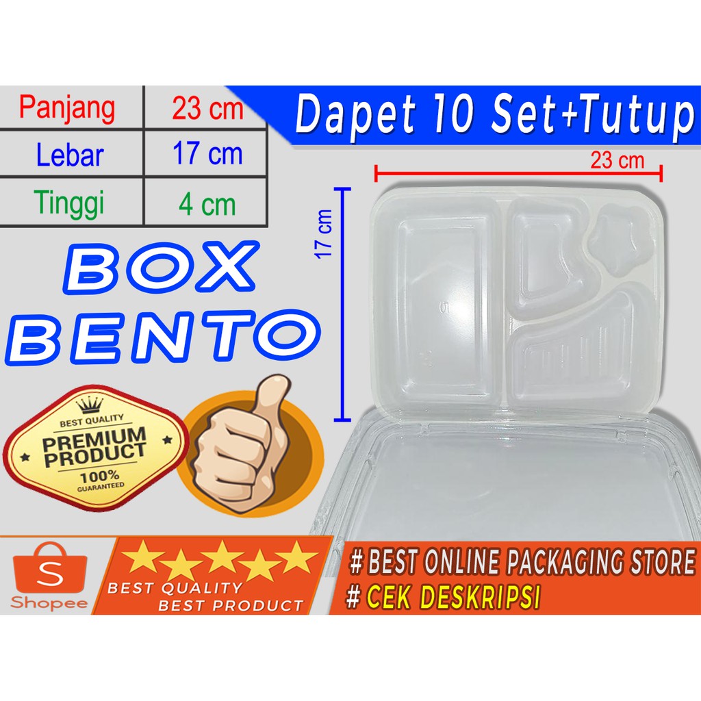 PENERIMA menerima BOX BENTO 10 SET sudah termasuk TUTUP-nya ( =300gr/pak )