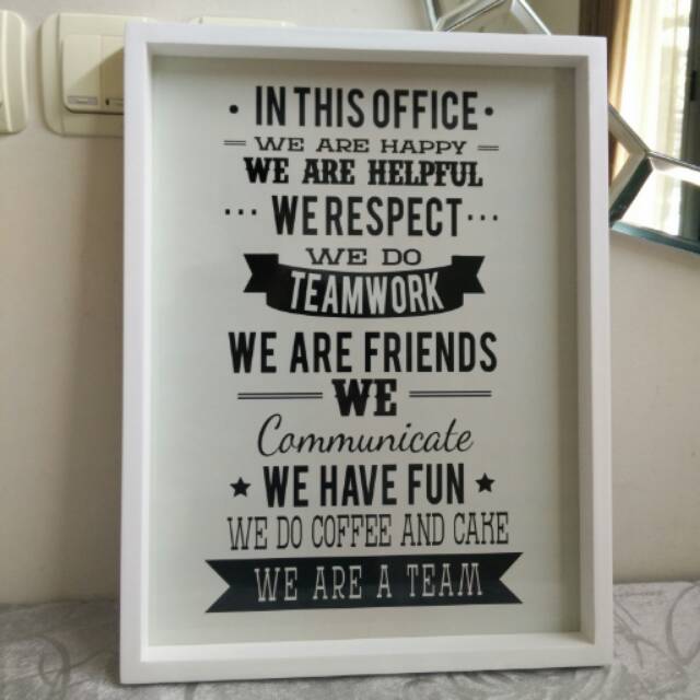 Hiasan dinding wooden posfer untuk office kantor frame uk